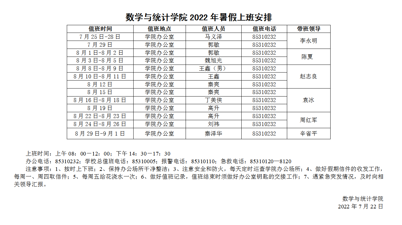 2022年暑假上班安排