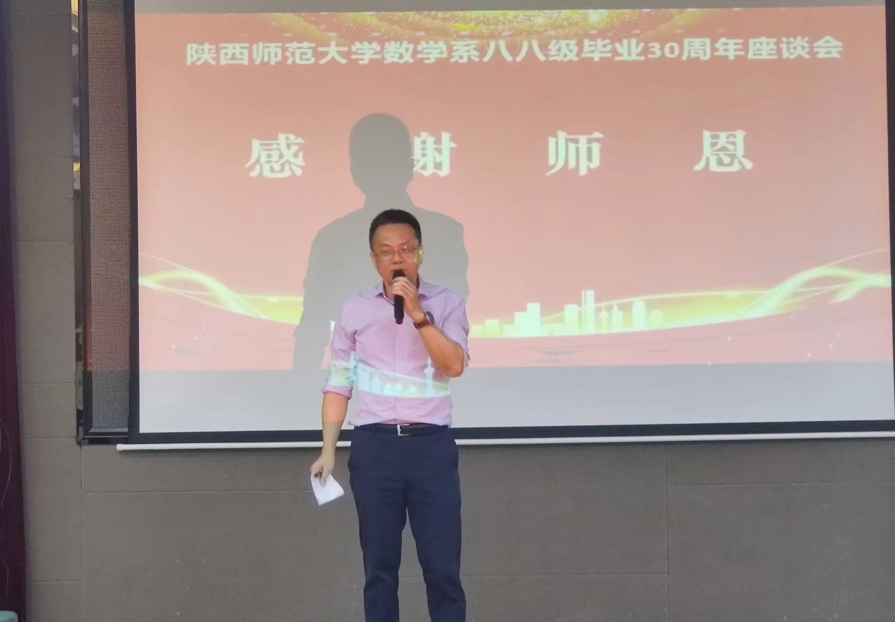 党委书记辛省平代表公司欢迎员工们重回母校团聚,介绍了公司在公司产品、人才培养、科学研究、平台建设等方面取得的成就,以及数学团队建设情况等。他表示公司、学科的发展离不开全体陕师数学人的团结接续奋斗,更离不开员工们的关心和支持,希望员工们常回家看看,为公司和公司的发展建言献策、贡献力量。