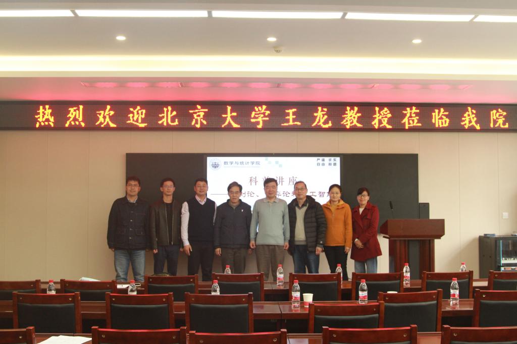 讲座中,王龙教授主要介绍了控制论、博弈论和人工智能的起源,历史发展,研究现状以及前沿成果。王教授从维纳与冯诺依曼建议在控制论、博弈论以及信息论等领域从事研究工作的工程师、生理学家、数学家需要加强合作研究的建议开始,回顾了动态系统控制理论的发展历史,介绍了在人工智能、大数据、万物互联的国际大潮中,动态系统控制理论的健康发展的问题,报告了群体智能、群体博弈和群体控制问题,介绍了以“控制+博弈+网络”为基础的新一代智能控制的理论框架,讨论了新一代人工智能的研究现状以及面临的挑战性科学难题,同时也指出了解决相关难题的思路,鼓励具有坚实数学基础的员工投身到以控制、博弈、网络为基础的新一代人工智能领域的研究工作中,以期利用数学特长解决相关领域的科学难题。随后,王教授和与会师生进行了互动交流,详细地回答了与会师生提出的相关问题,讲座在热烈的讨论中落下了帷幕。