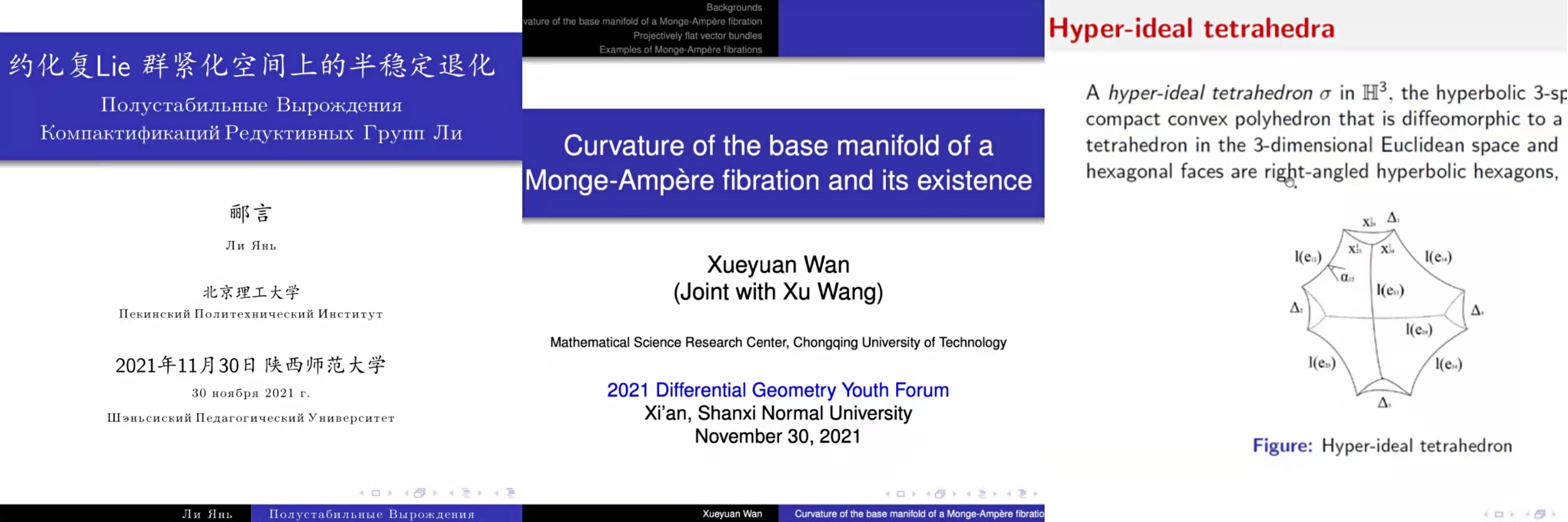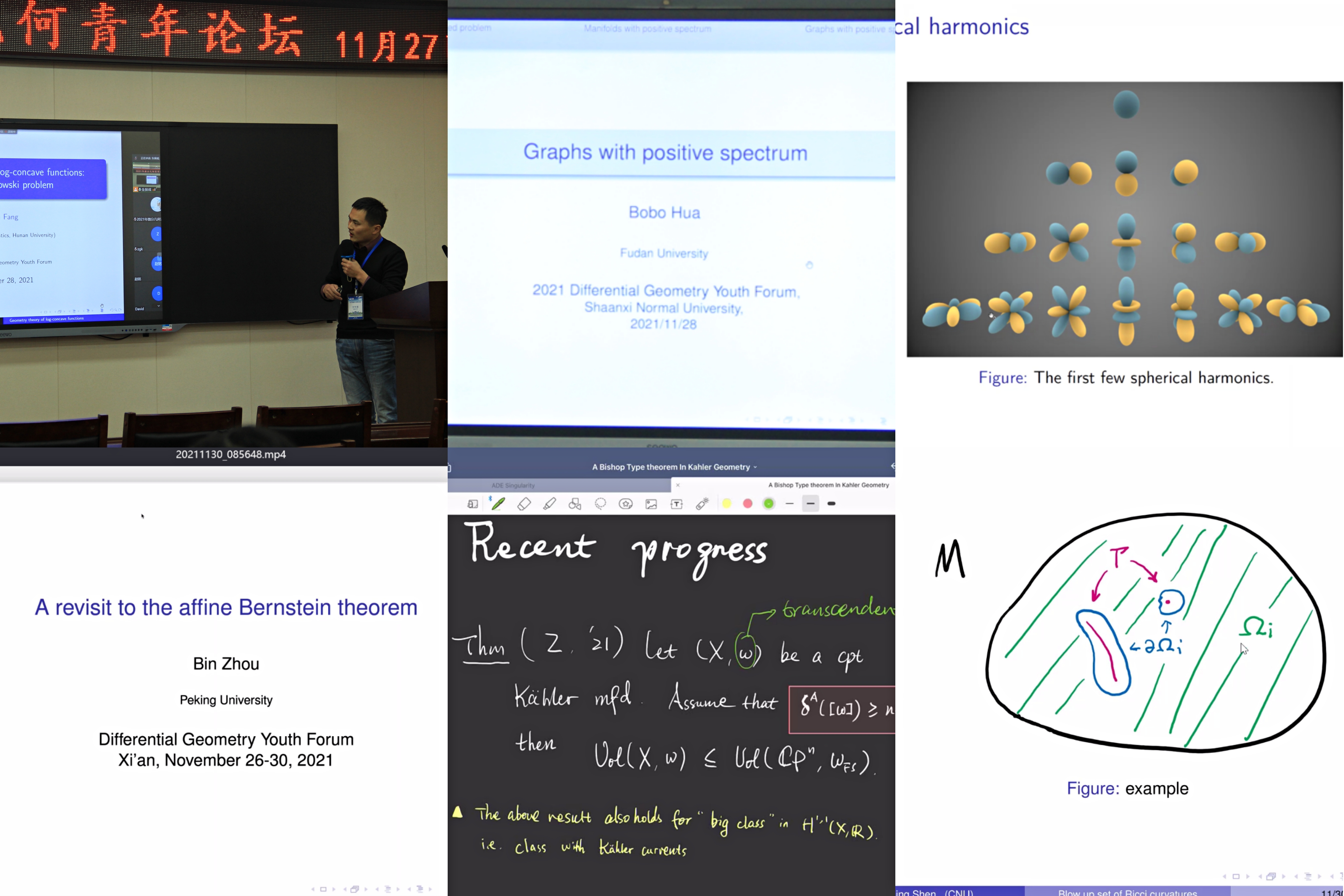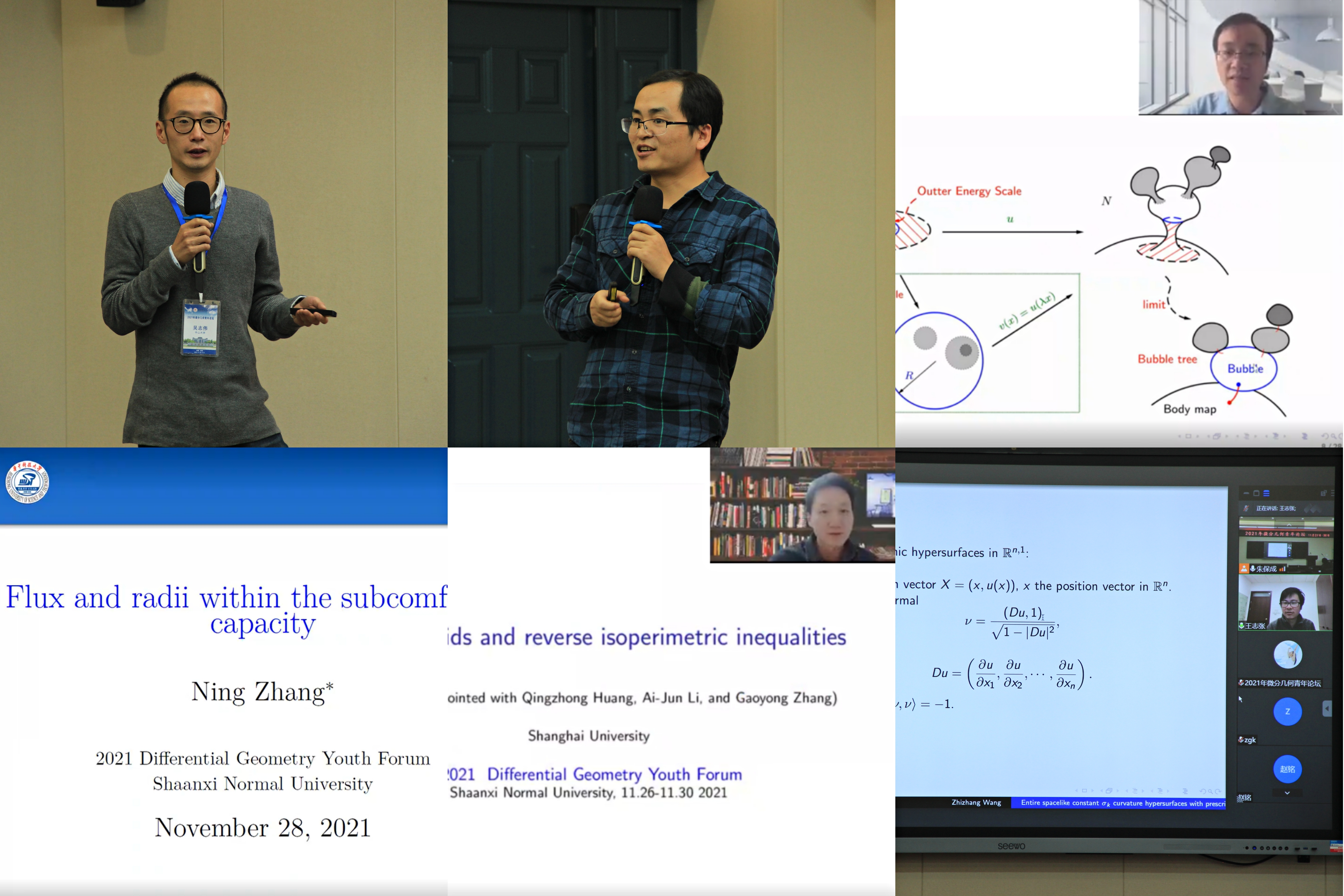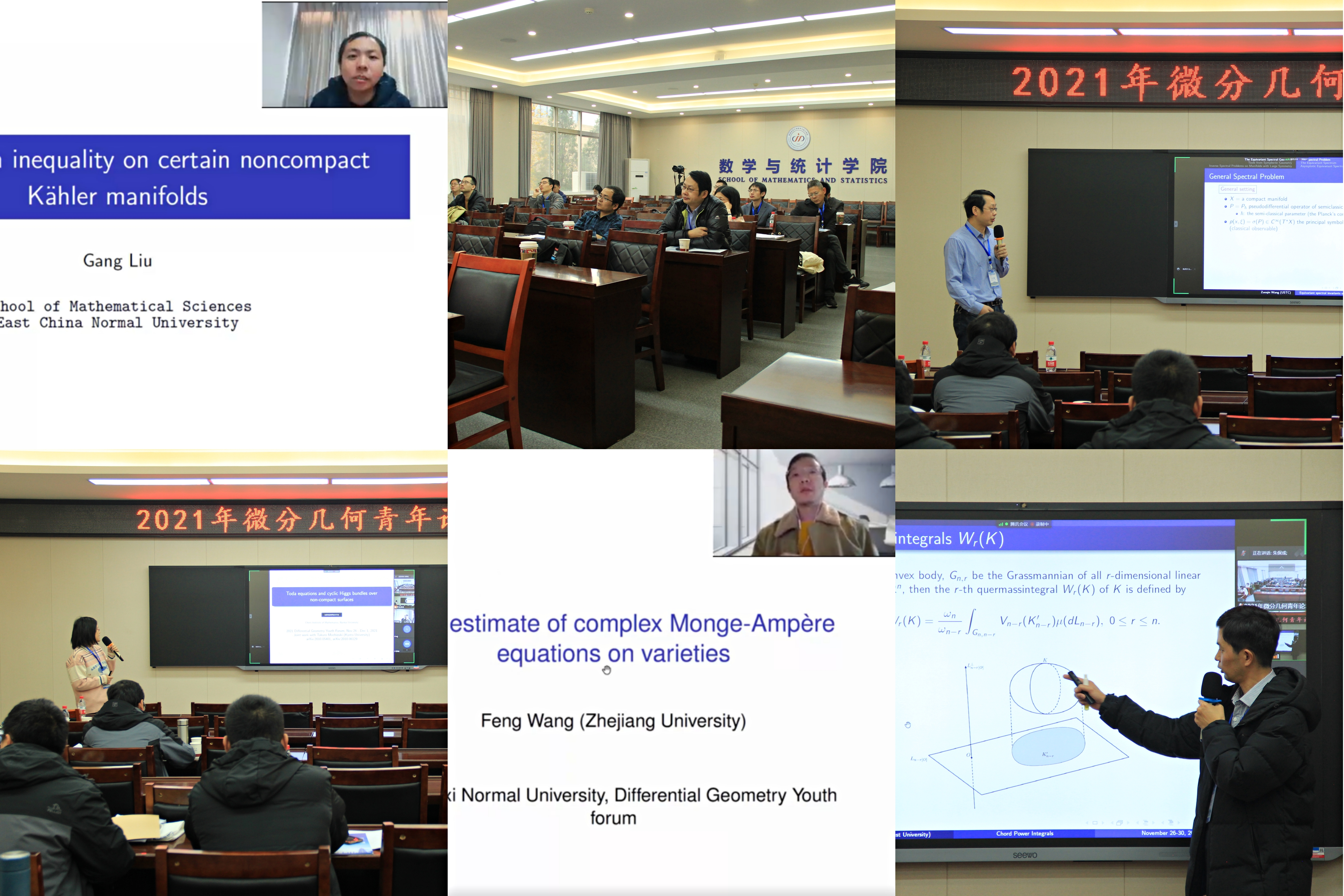 2021年11月27日至30日,由北京师范大学和首都师范大学主办、云顶国际8588yd承办的“2021年微分几何青年论坛”在云顶国际8588yd长安校区成功举办。本次论坛旨在促进国内微分几何的发展,汇聚国内青年几何专家交流本领域最新学术成果及进展,搭建科学研究与学科发展平台,通过线上与线下结合的形式开展学术论坛,研讨微分几何与几何分析前沿问题,探讨未来发展。