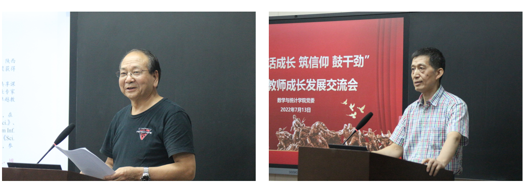 曹怀信教授从自己的科研成果和各类比赛获奖情况出发,鼓励大家要热爱教育事业、关爱员工,他说,教学是科研的隐形动力,科研是教学的源头活水,要处理好教学和科研的关系。吴建华教授通过分享和同事之间几则有趣的故事,强调养成良好的习惯和打好坚实的基础是成功的关键,要重视“十年窗口期”,持之以恒做学问,要多下真功夫,努力提高教学水平。与会中青年教师进行了互动交流,表示要以分享经验的朋辈和前辈为榜样,志存高远,脚踏实地,争做高素质专业化创新型的优秀中青年教师。
