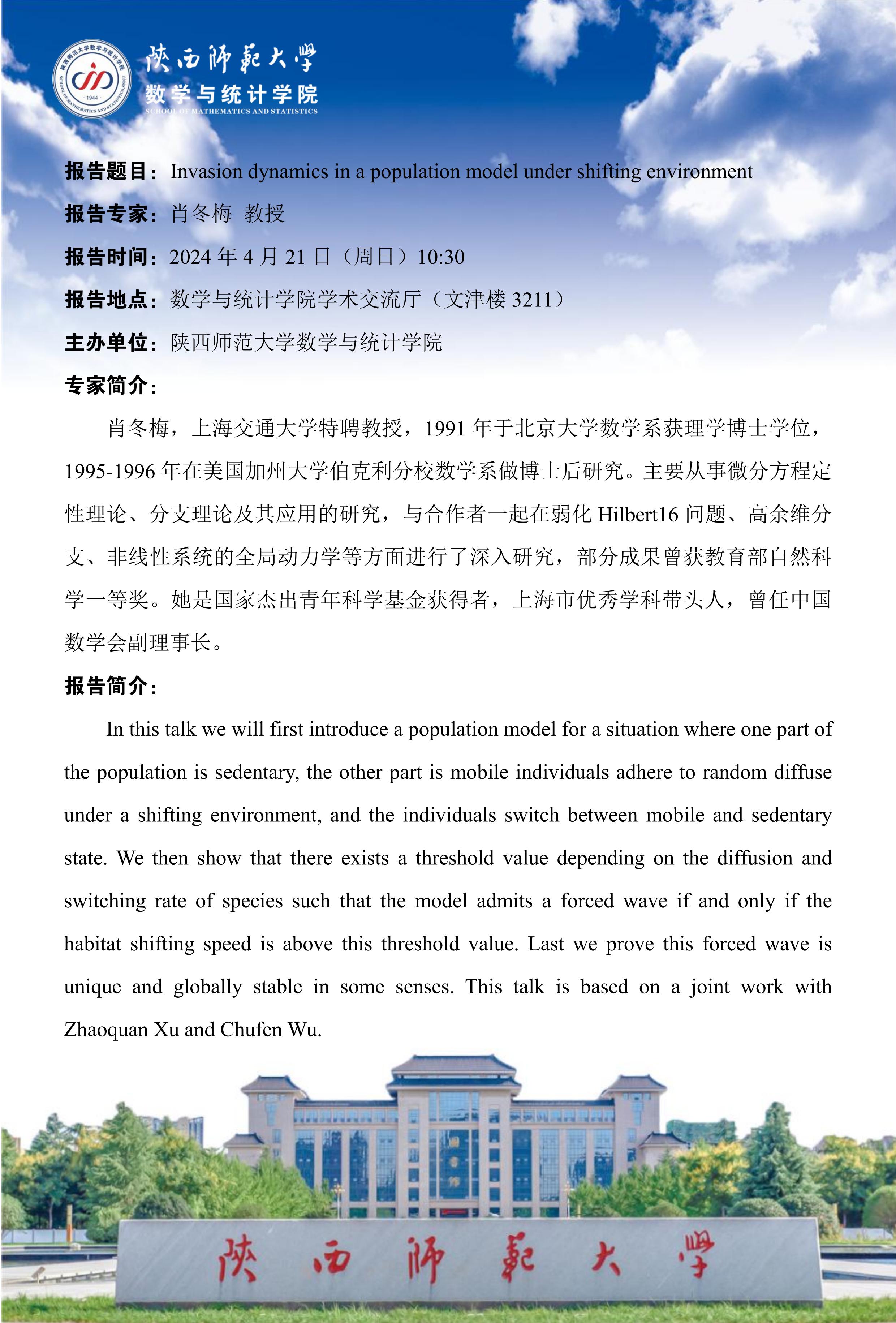 八秩同辉校庆系列15 Invasion dynamics in a population model under shifting environment
