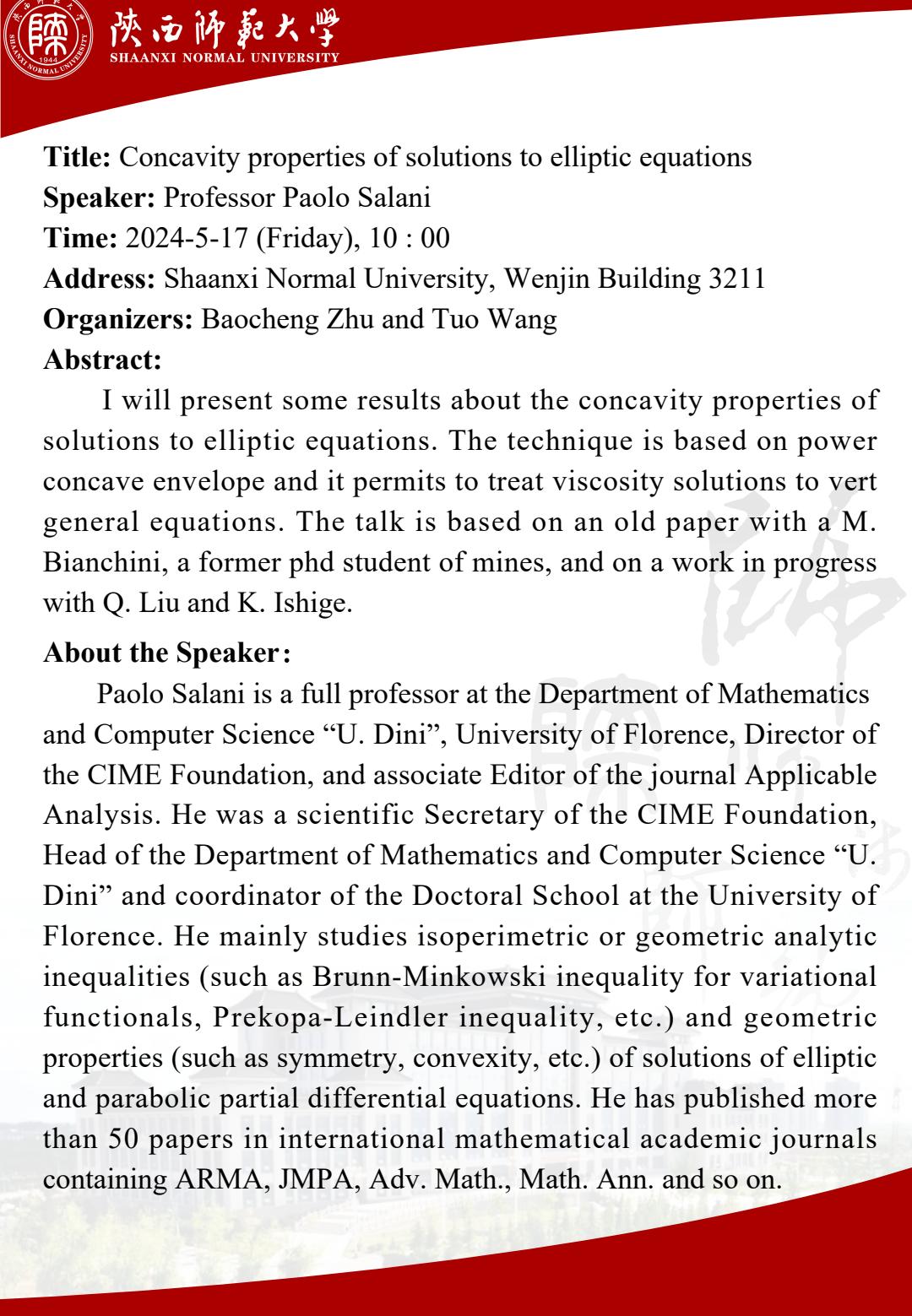 八秩同辉校庆系列35 Concavity properties of solutions to elliptic equations