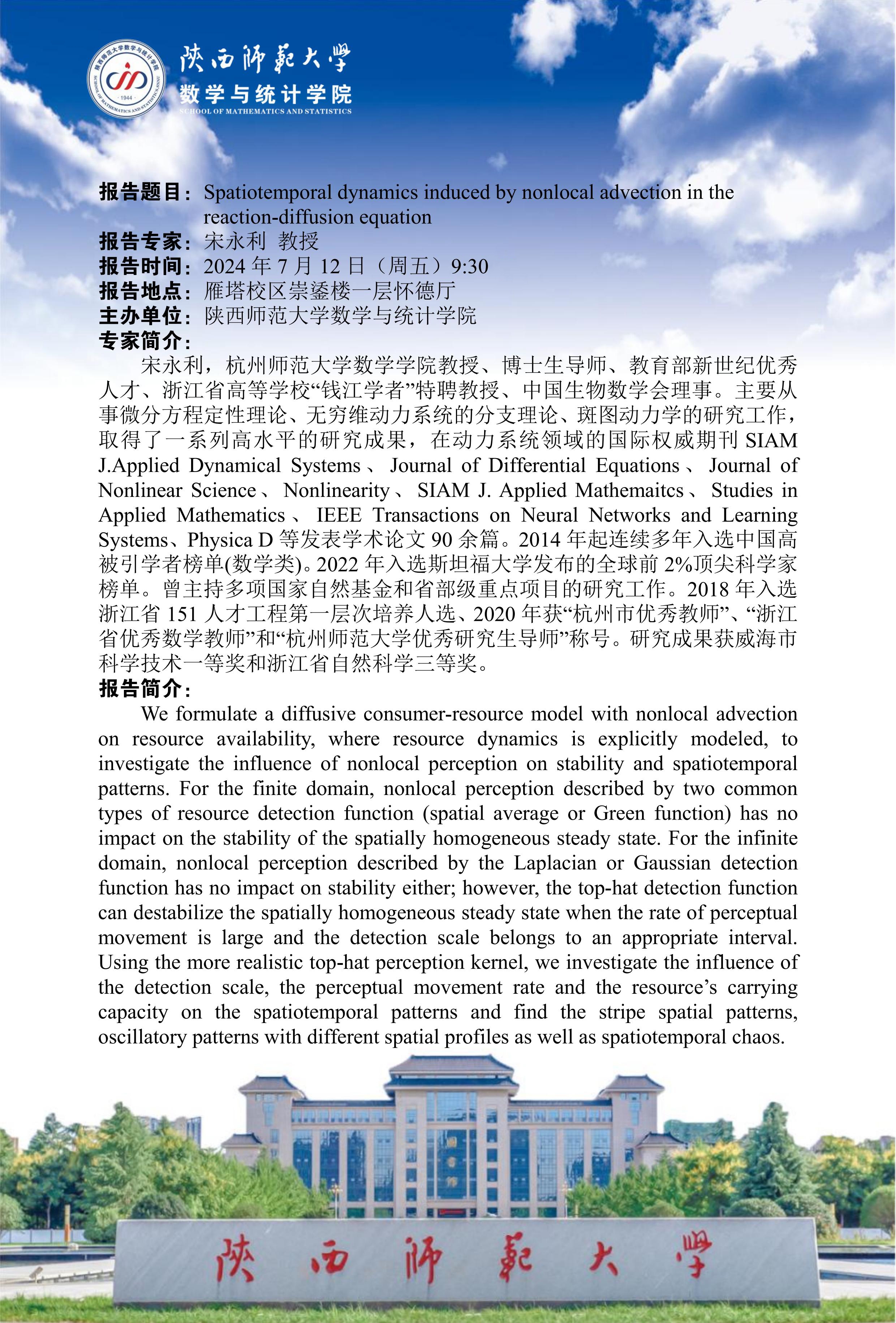 八秩同辉校庆系列69 Spatiotemporal dynamics induced by nonlocal advection in the reaction-diffusion equation