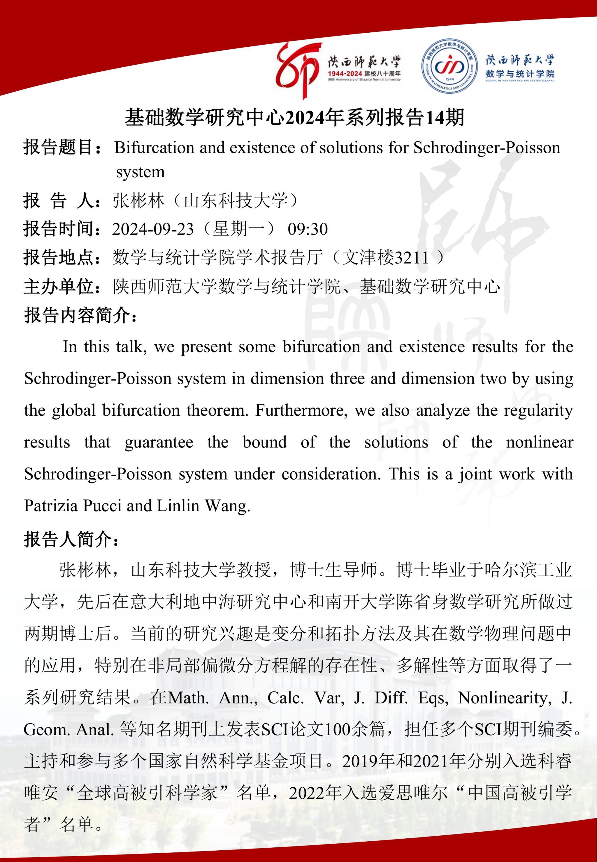 八秩同辉校庆系列88 ifurcation and existence of solutions for Schrodinger-Poisson system