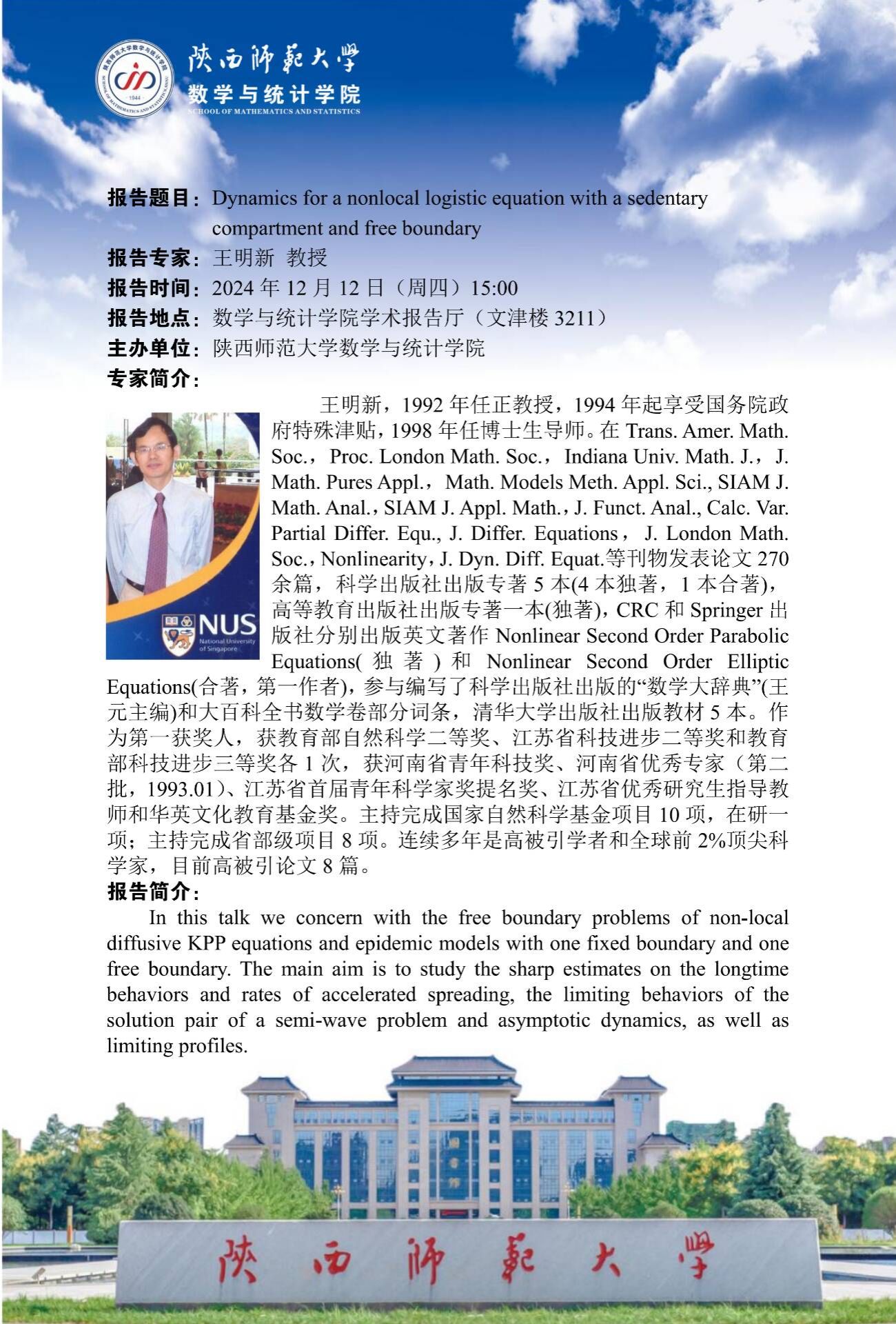 八秩同辉校庆系列110 Dynamics for a nonlocal logistic equation with a sedentary compartment and free boundary