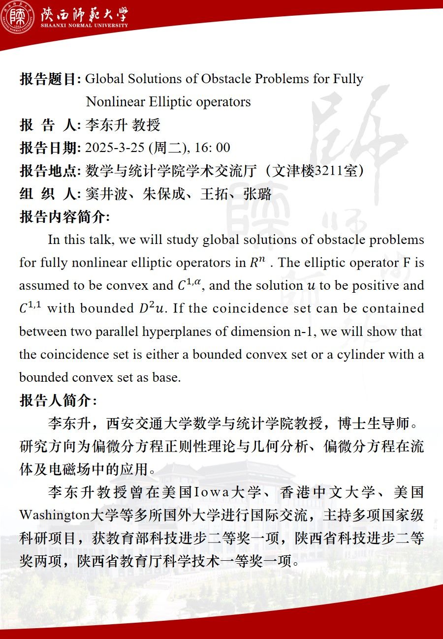 数统华章2025系列3 Global Solutions of Obstacle Problems for Fully Nonlinear Elliptic operators
