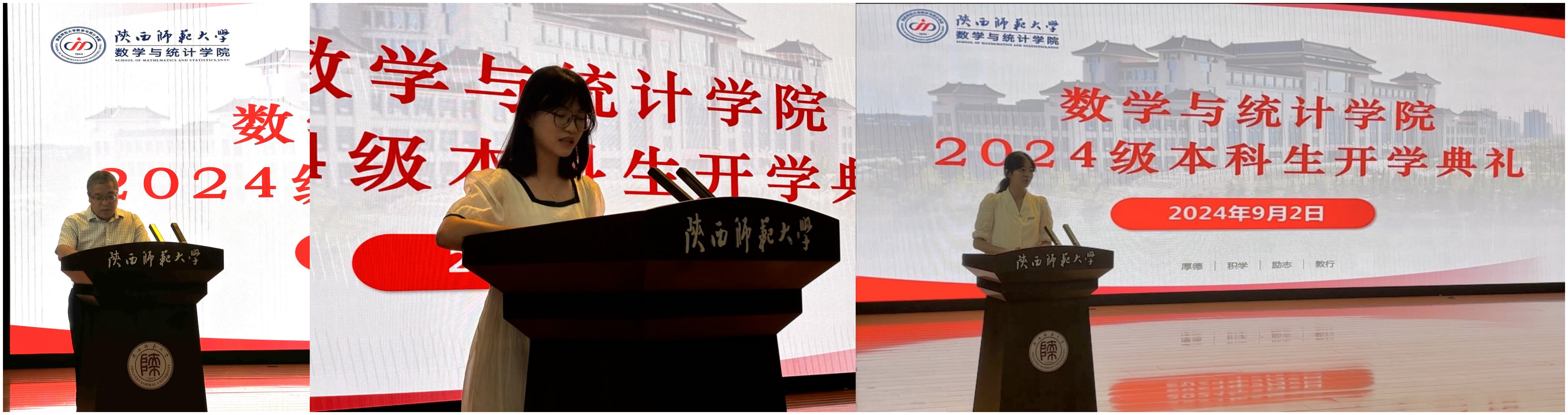 新生代表2024级本科生姚奕卓从自身的成长经历出发,讲述了结缘陕师,奋力拼搏,最终来到师大的故事,并鼓舞大家在新的起点上敢于追梦,努力逐梦,勤于圆梦。