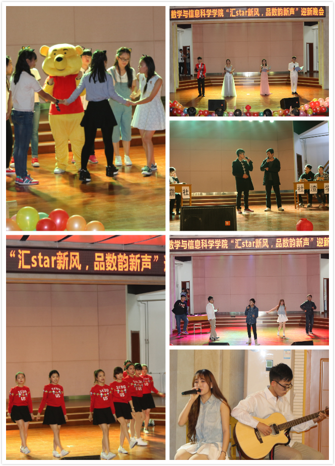 it》点燃全场,同学们热情洋溢。接着由马星星等同学表演的对口相声《享受生活》,博得了全场掌声。袅袅余音的民乐演奏、欢笑满堂的纳新小品彰显出我们数科学子的多才多艺。接下来丰富多彩的歌曲串烧,让同学忘我沉醉。而中间的游戏互动环节也通过答题抽奖的方式带动了全场气氛,微信弹幕、滚动抽取幸运观众等多样的参与方式以其极高的趣味性吸引大家积极参与其中。