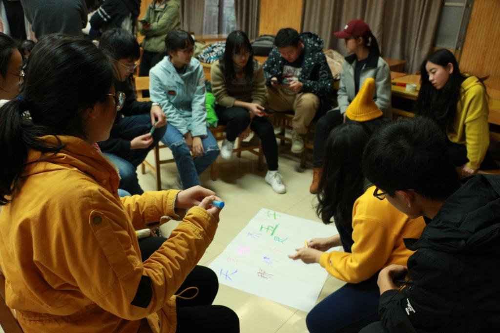 心理团体辅导期间,鞠恩霞简要介绍了新生适应性团体心理辅导活动的目的、意义以及需要注意的事项。接着,通过两个热身活动“大风吹”、“有家真好”拉开帷幕。热身环节的游戏在短时间内拉近了队员之间的距离,提升了大家参与积极性;紧接着进行的“生日分组”通过无声语言的交流彻底消除了队员们之间的羞涩和陌生,对彼此更加熟悉;随后的“团队组歌”给各小组布置了一个不可能完成的任务,在有限的时间内团队成员集思广益,相互配合,积极完成团队建设任务,将活动氛围推向高潮;活动最后通过60余人参与的“解开千千结”活动让大家感受到了团结的力量和集体的温暖,“结”解开的那一刻大家用欢呼声表达了由衷的赞赏。最后,组员们带着彼此的祝福和美好的希冀在互相揉揉肩捶捶背中结束欢乐的活动。