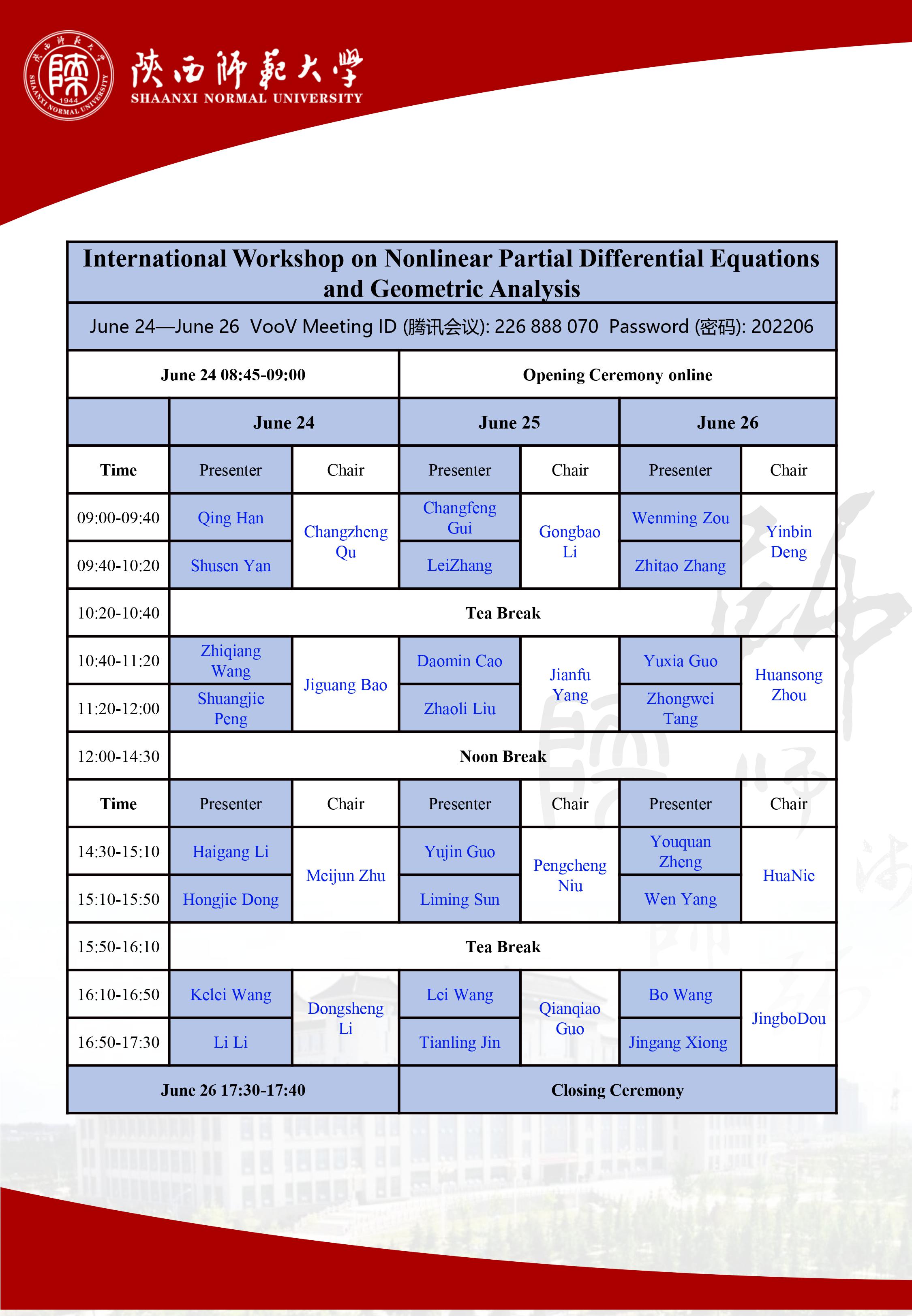 2022年非线性偏微分方程和几何分析国际论坛