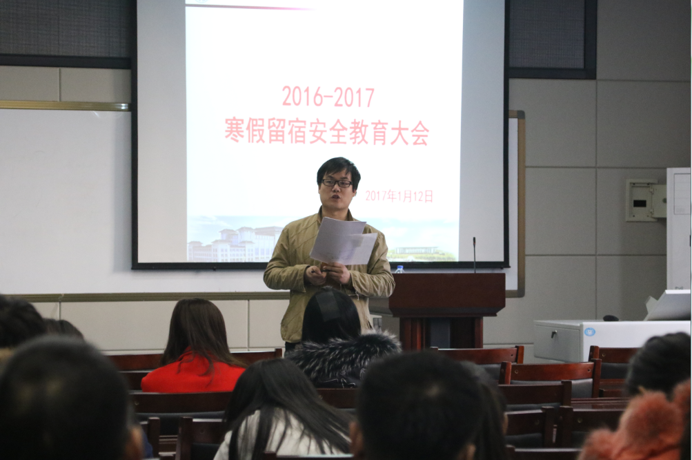 为做好寒假期间留校生的教育管理工作,2017年1月12日下午,公司在学术报告厅召开了2016-2017学年寒假留宿安全教育大会。