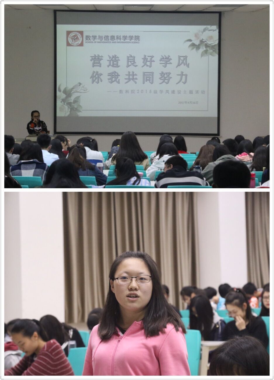 为引导和帮助员工更好地践行“抱道不曲、拥书自雄”的优良学风,4月16日2015级本科生在文津楼101教室开展了“营造良好学风 你我共同努力”的学风建设主题活动,本次主题活动由辅导员何苗主持。